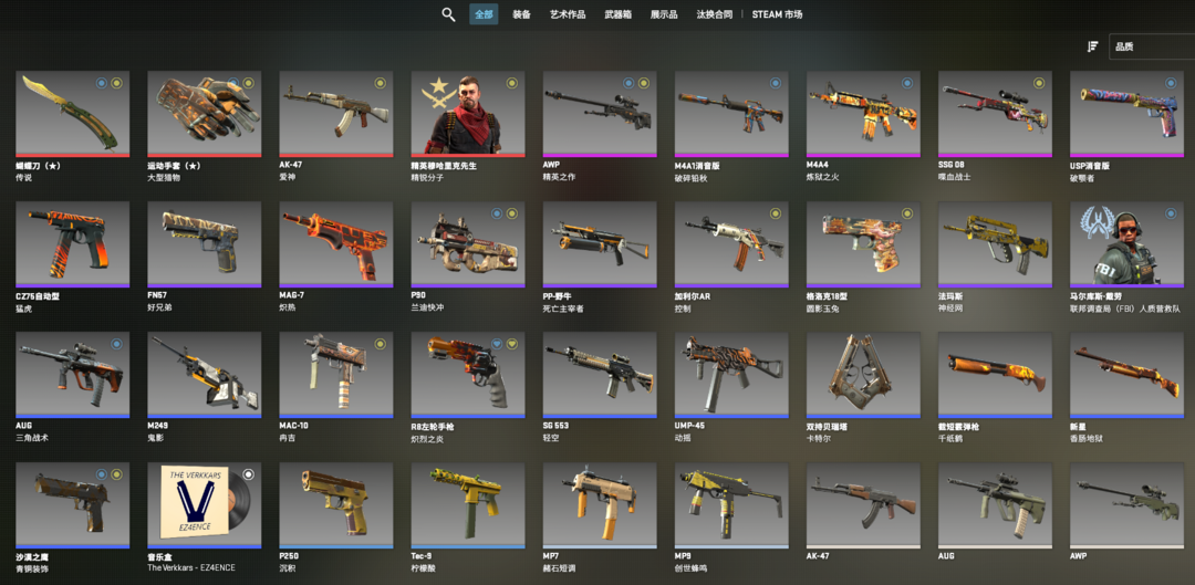 完美A+❤全黄套❤蝴蝶刀传说❤运动手套-大型猎物❤炼狱之火M4A4❤爱神AK47❤精英之作AWP