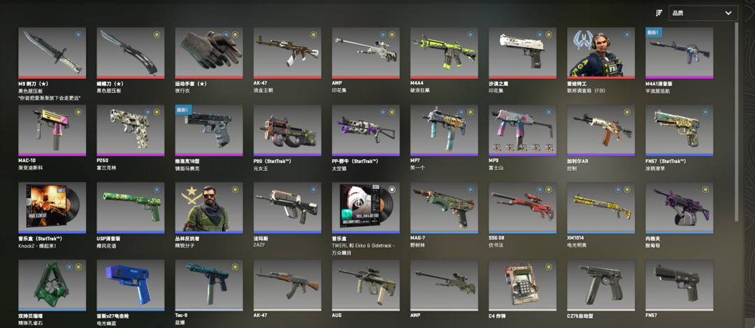 完美5E❤️顶级黑色套❤️崭新夜行衣❤️崭新黑色层压板蝴蝶刀+M9❤️流金AK印花集AWP
