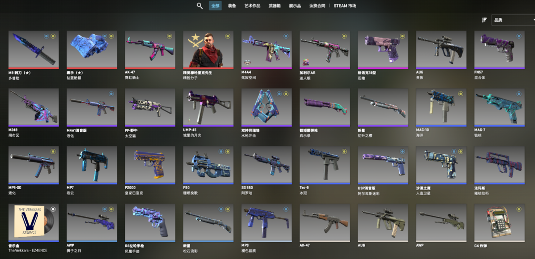 完美A+丨全蓝套丨M9多普勒丨钴蓝骷髅丨霓虹骑士AK丨死寂空间M4丨狮子之日AWP