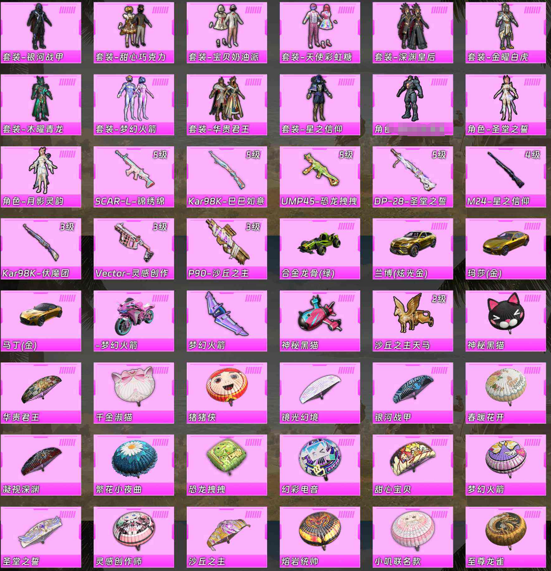 【红装:1 粉装:115 粉枪:11 载具:5】4级红木乃伊❤梦幻火箭❤猪妹❤圣堂❤奶油派彩虹糖巧可