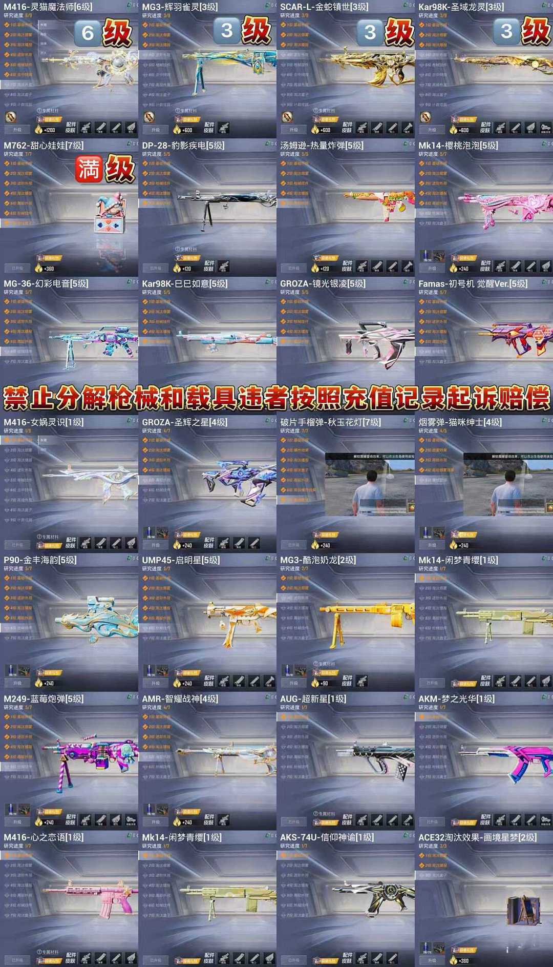 限制: 租号12次及以上 | 撤单率<60%才可租用此帐号装备描述:特别声明!!!! 分解枪械永久拉黑不解除 【乱投诉拉黑】有问题/上不去/其他问题/ 特殊需求/投诉没用等问题 账号累计充值超40万!切勿开挂/分解装备/恶意骂人/等等违规行为,发现违规必追查到底(平台登录记录,游戏登录ip手机号 设备串号 充值付款记录不要侥幸现在网警都能调到你的所有行为记录就算盗用他人信息也一样能查到你头上)按账号充值金额=起诉/刑事立案/追责赔偿! 非速玩【非云!本机设备畅玩不卡顿】