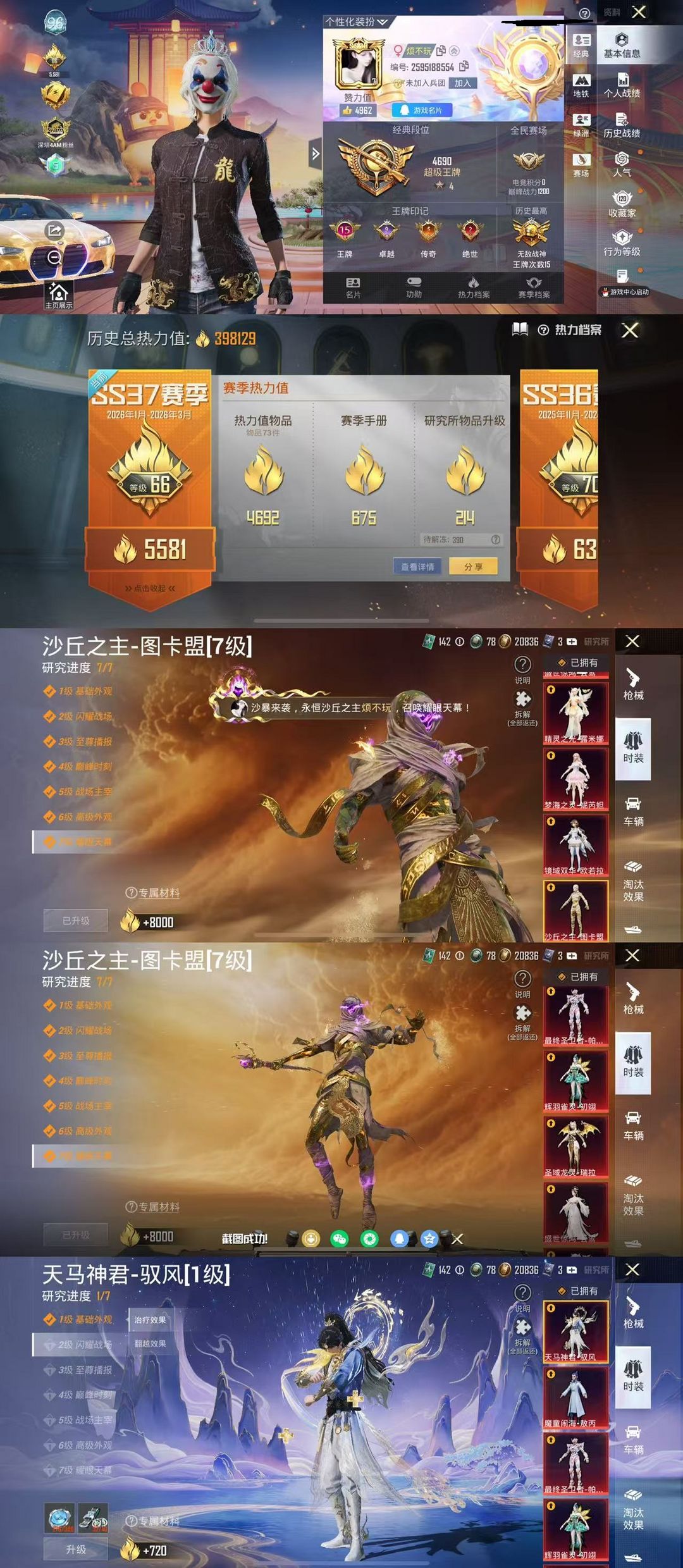 老101小丑雪国龙师傅星星裤都市赤蝎金鞋⭐满级天马神君10红⭐9级天马神君9级星梦奇缘⭐满级黄金宝马
