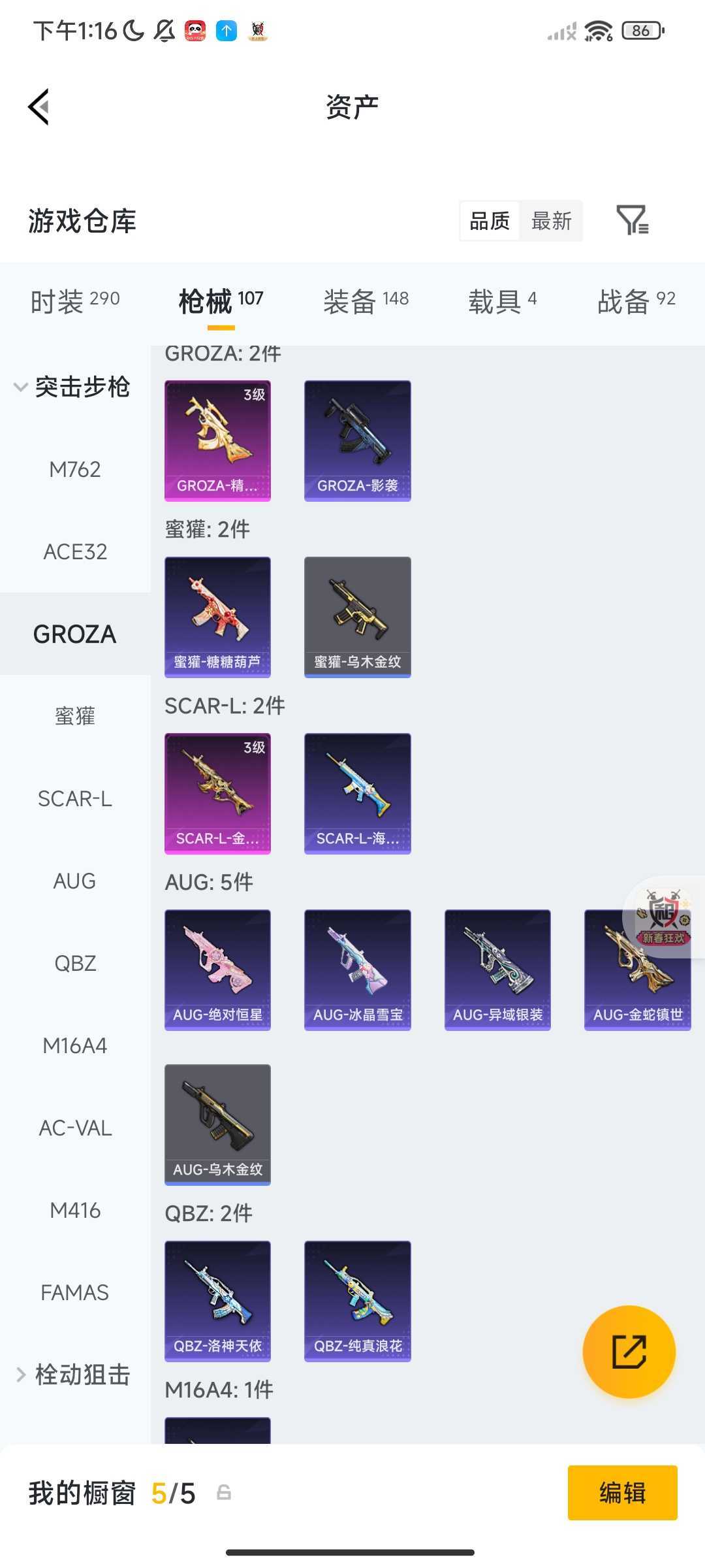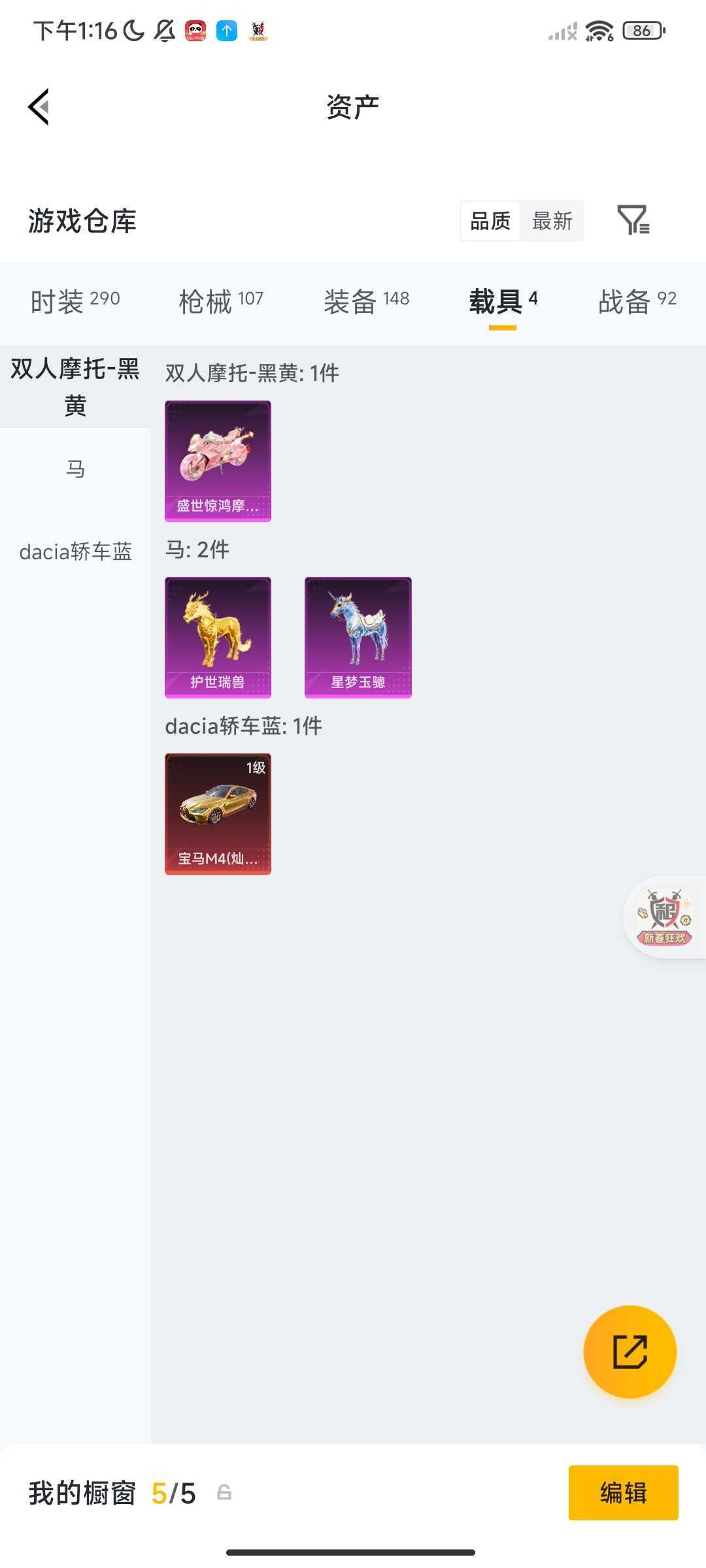 装备描述:4红27粉❤️3级红精灵之光红妆金蛇镇世盛世惊鸿红妆宝马M4超值号新皮❤️4载具4特效枪