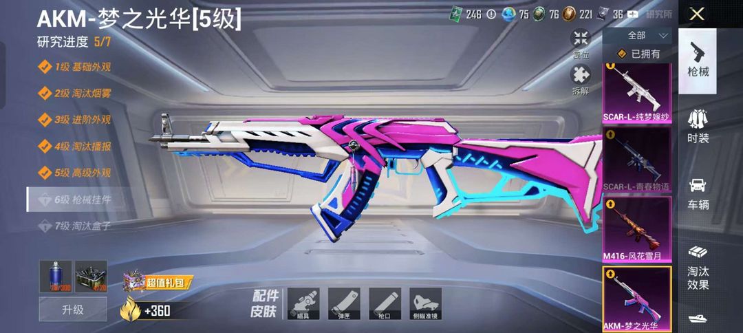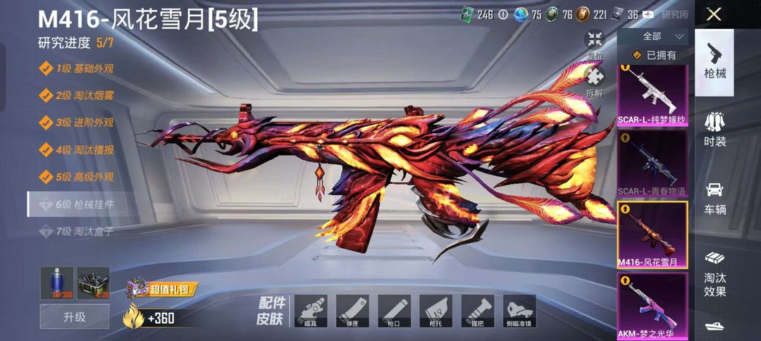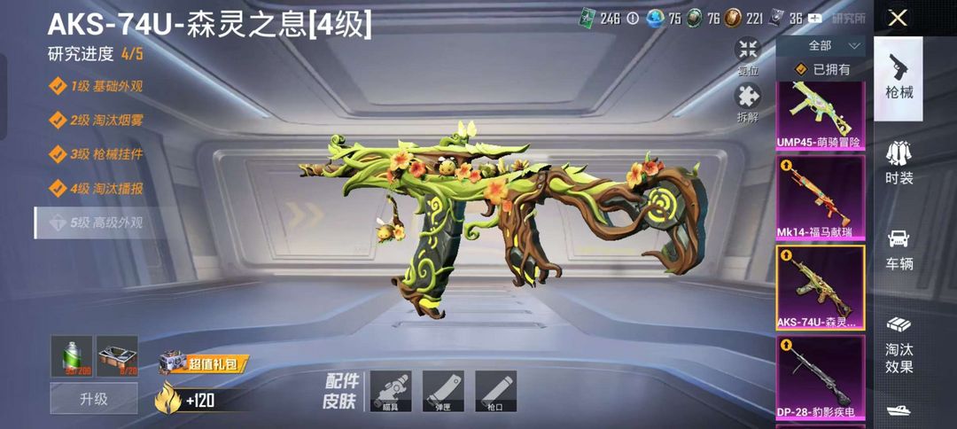 黄螳螂/木乃伊/小熊背包/玛莎/1载具/9升级枪/3粉装/5级风花雪月/5级梦之光华