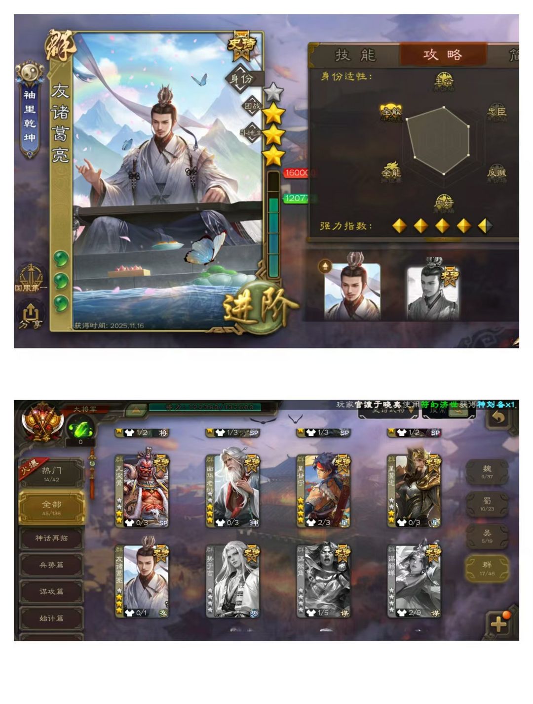 限制: 撤单率<19%才可租用此帐号装备描述:官方三等大将军,无卡,VIP10! 1五星炎龙:界徐盛动皮! 15四星玉龙:界左慈钟会李儒马云禄动皮,关索留赞戏志才许攸动皮,谋黄忠金皮,杜预神太史慈! 45史诗武将,星甘宁动皮,友诸葛亮界沮授神赵云南华老仙张让刘璋! 30动皮63金皮148国战皮肤!