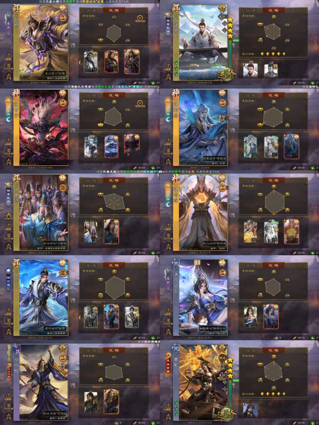 【卡酱】大将军友诸葛亮☀新回廊刘焉☀新回廊神甘宁☀新回廊十常侍☀双形态神郭嘉回廊神荀彧曹髦杜预文鸯
