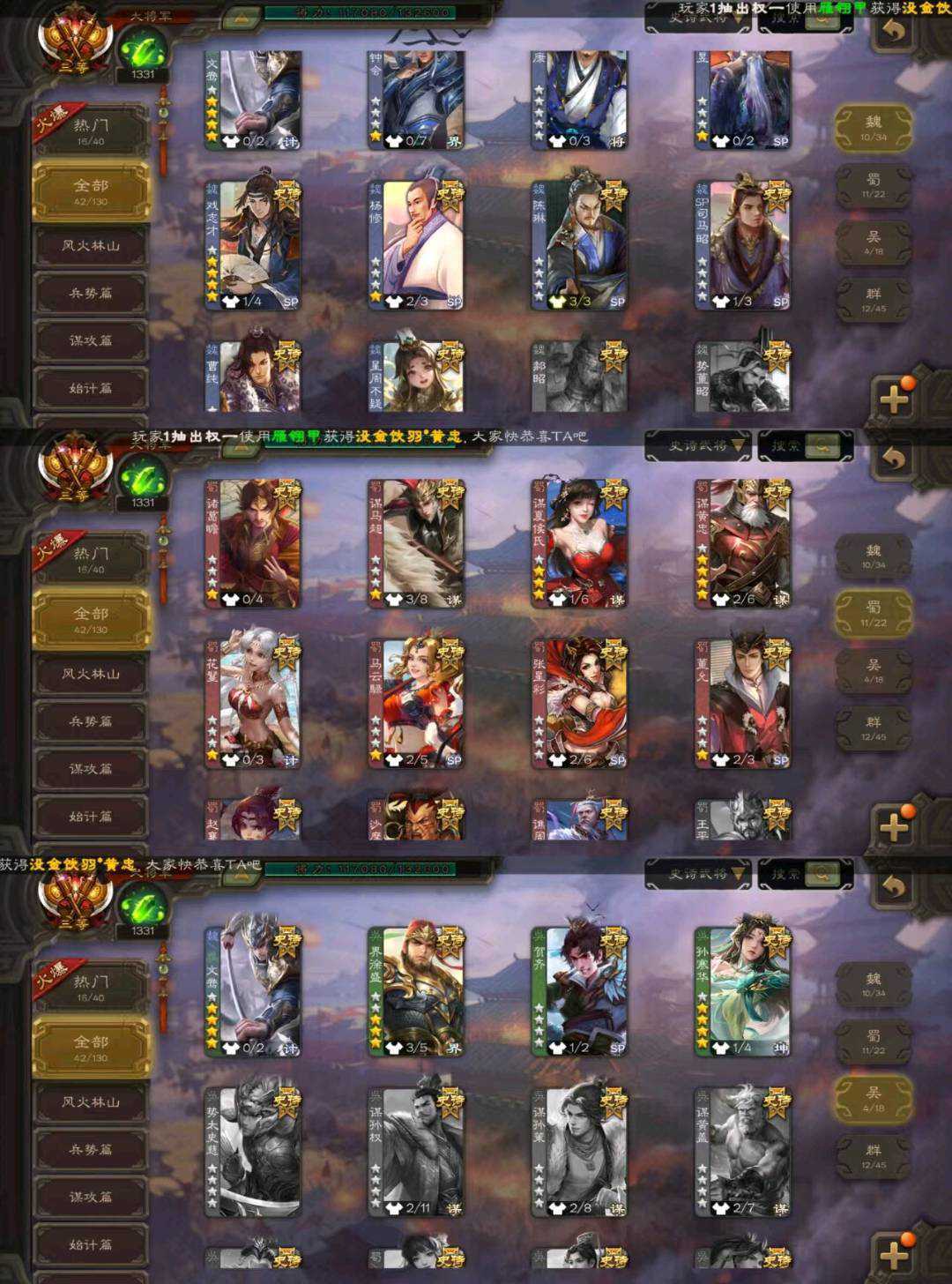 【白菜包天】友诸葛亮5巨头大将军双形态神郭嘉动态神荀彧动态神甘宁动态谋貂蝉动态孙寒华界沮授谋黄忠文鸯