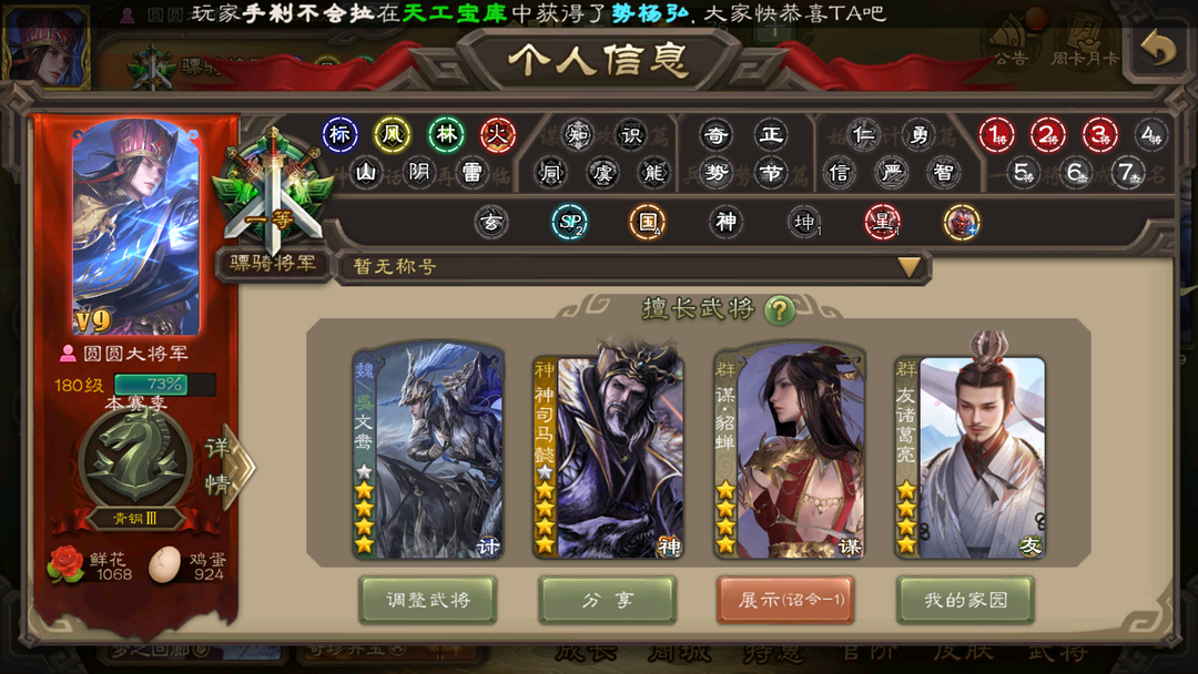 【有卡】◆友诸葛亮◆动文鸯◆动谋貂蝉◆神司马懿◆神太史慈◆动谋黄月英