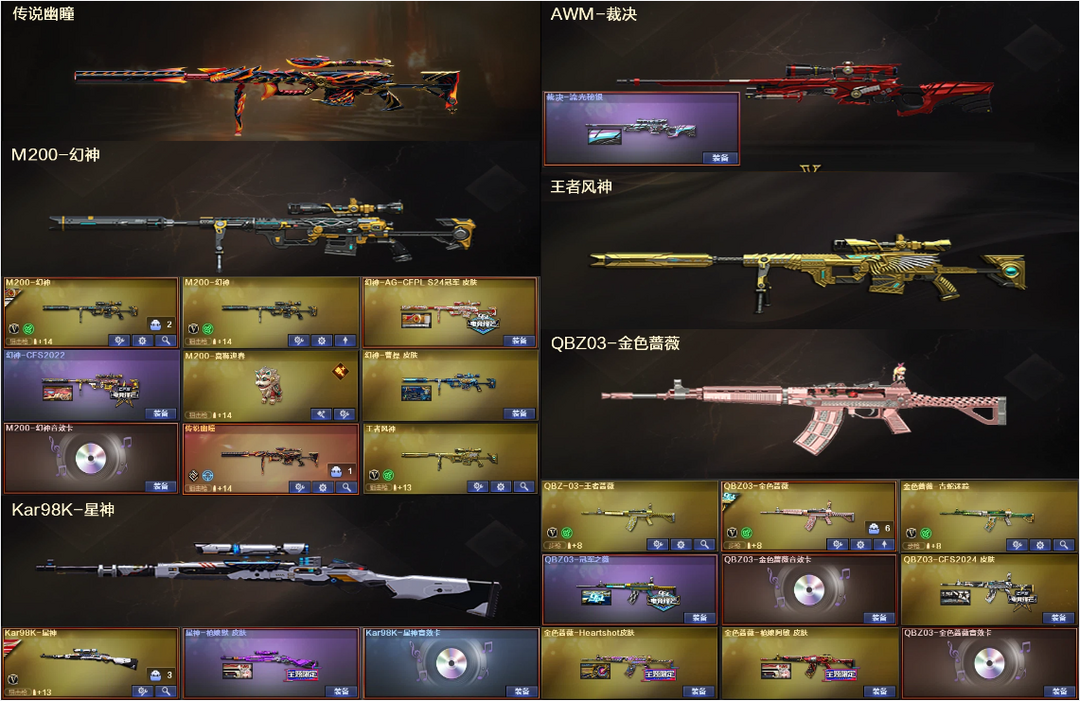 传说幽瞳♉幻神6皮新AG喜狮音效卡+星神枪娘音效+蔷薇6皮音效♉白虎裁决3质量手枪♉枪娘秦勇5烈龙