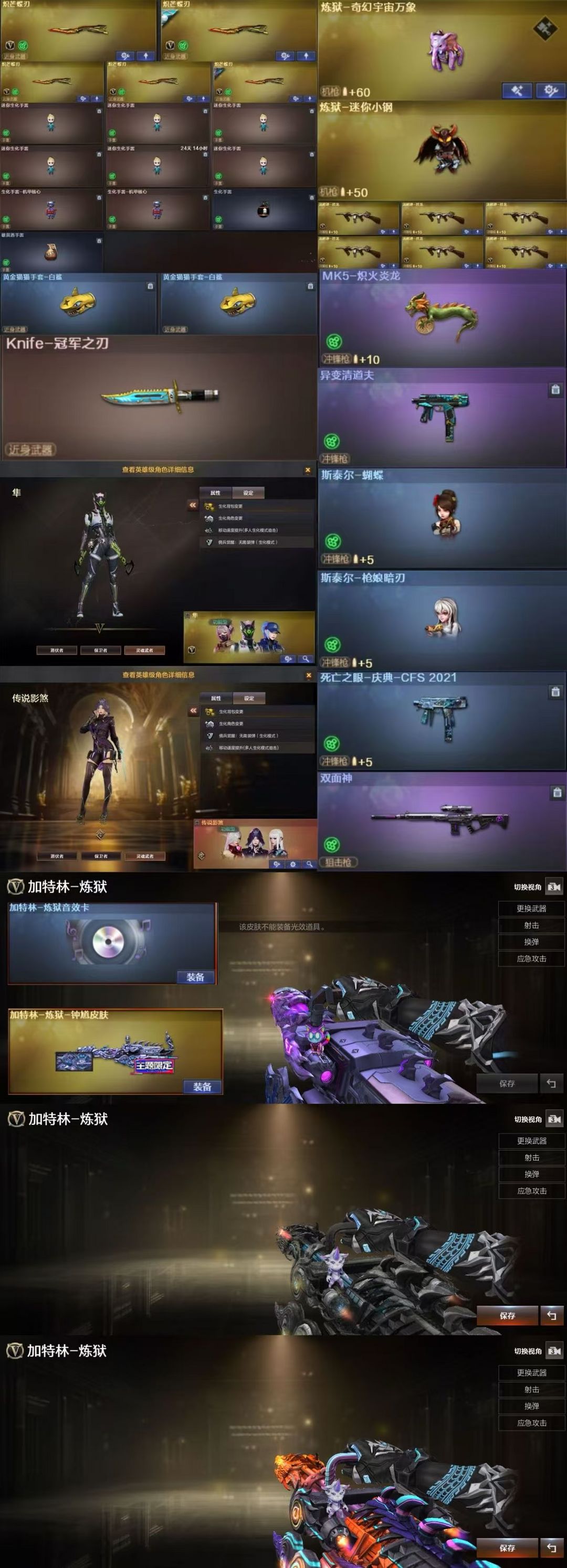 装备描述:爆破生化双全装王者武器:王者玄武;王者风势-觉醒版;青龙之魄;炫金千变;王者之势-觉醒版;王者星霆;炫金骑士;炫金毁灭;QBZ-03-王者蔷薇-觉醒版;王者之武-觉醒版;王者之魄烟雾弹;炫金无影 英雄武器:AA-12-雷霆;Scar Light-白虎;AWM-裁决;擎天;9A91-烈火;AWM-裁决;AN94-超新星;沙鹰-天神;柯尔特-荣耀世冠白鲨2023;AK-47-猩红传说;屠龙;传说夜影;AWM-裁决;传说辉光;Kar98K-星神;传说幽瞳;汤姆逊-烈龙;擎天-竞技荣光;烟雾弹-竞技荣光;高爆手雷-竞技荣光;炽芒蝶刃;闪光弹-竞技荣光;Barrett-毁灭;QBZ03-金色蔷薇;擎天;M4A1-死神;超新星-热带奇洋;M4A1-猎神;龙啸-热带奇洋;Scar Light-白虎;高爆手雷-云龙;云龙扇;USP-雷暴;斩神刀-雷暴;高爆手雷-雷暴;闪光弹-雷暴;黑武士-锦绣游龙;手雷-热带奇洋;龙啸;传说破晓;柯尔特-冠军之特;AK47-机械迷城;AK47-黑武士;G36C-幻影;M4A1-青龙;AK47-黑鲨;COP 357-幻灵;RPK-盘龙;M4A1-黑骑士;Barrett-