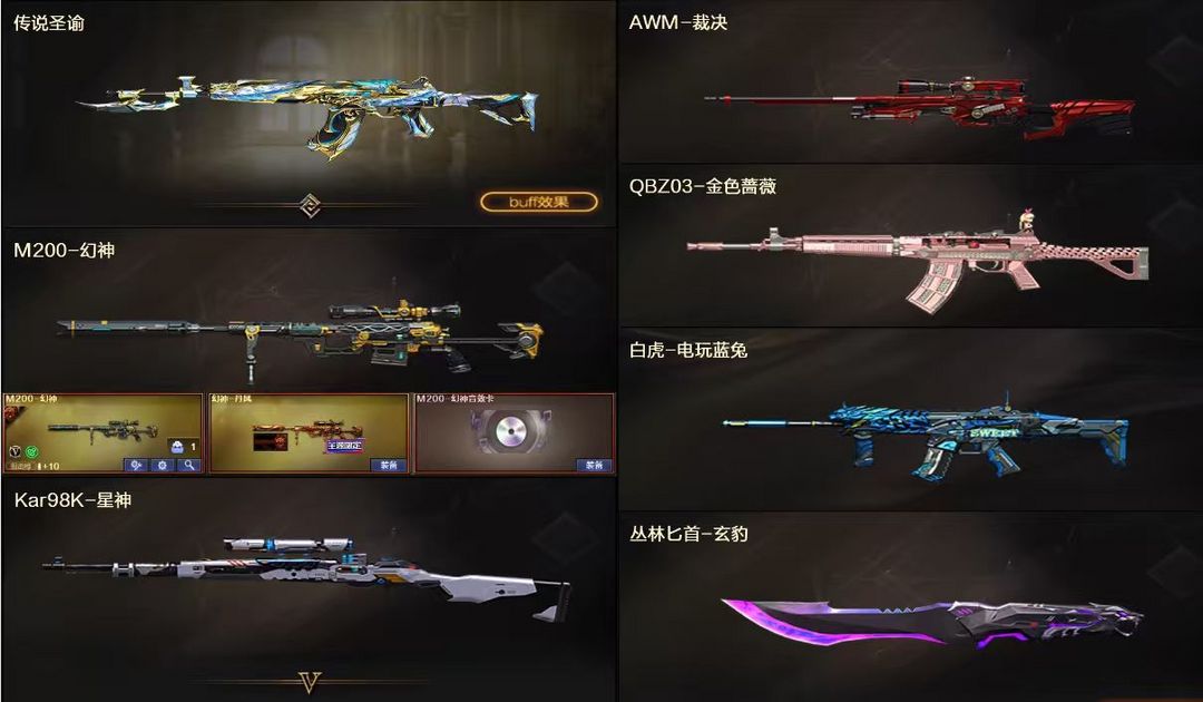 传说圣谕❤幻神丹凤音效卡+星神裁决❤QBZ蔷薇白虎电玩蓝兔+雷神修罗天神屠龙匕首❤4防王者炫