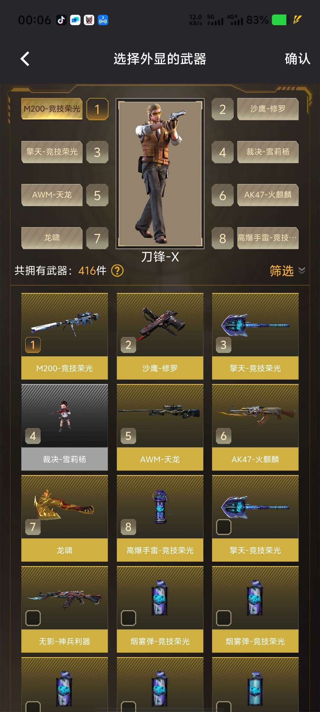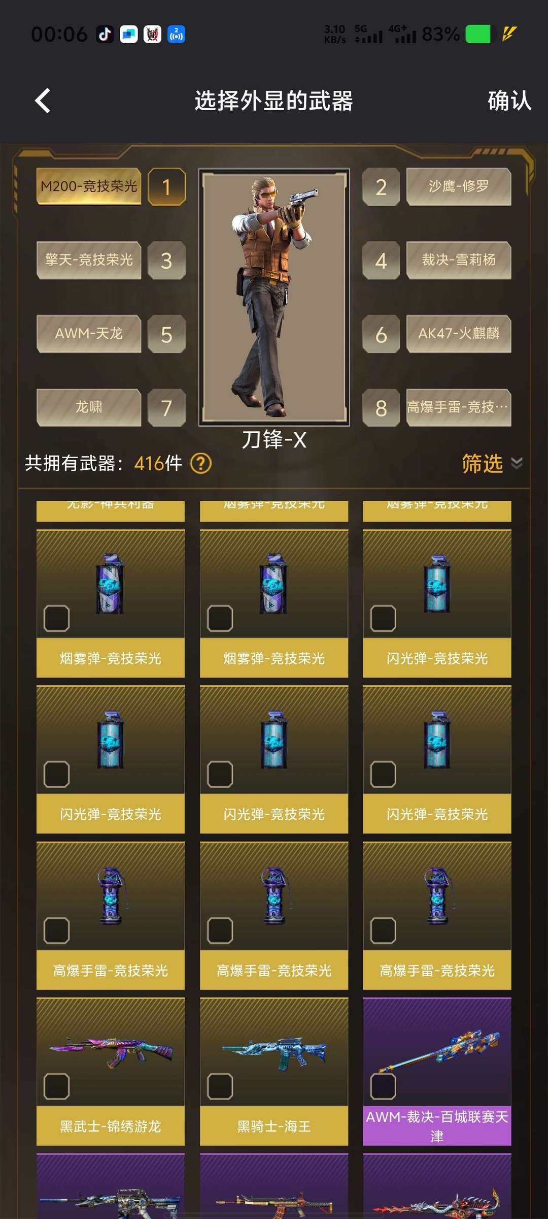 竞技荣光m200手雷×11擎天×2,雪莉杨小人枪裁决,沙鹰修罗,龙啸,天龙,火麒麟