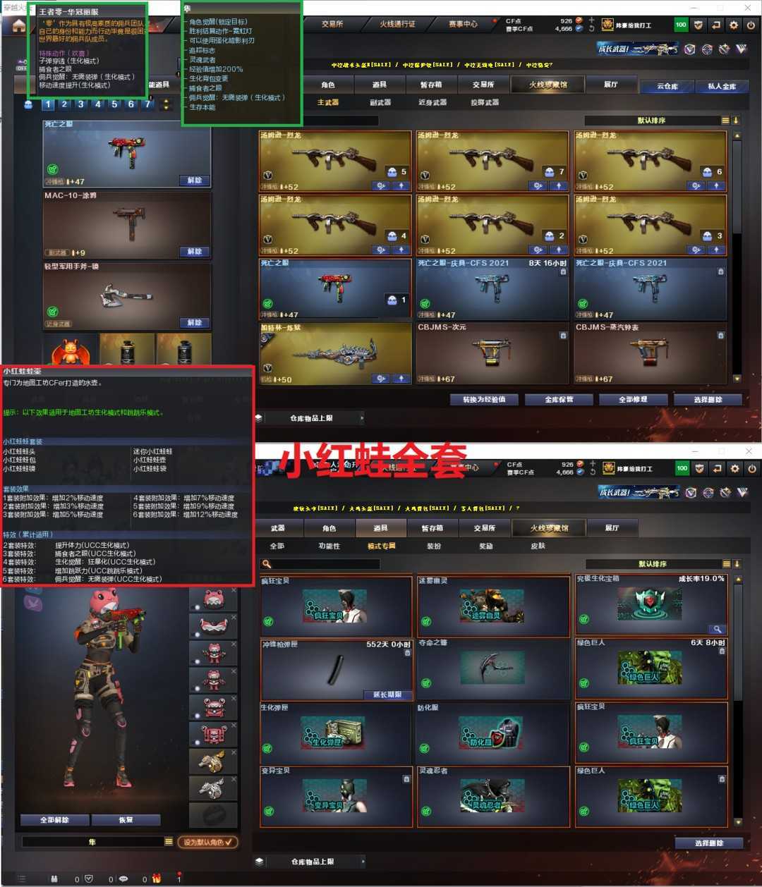 限制: 租号3次及以上 |装备描述:北部小红蛙套装全套,4防隼炽芒蝶刃蝴蝶刀,6烈斯泰尔蝴蝶