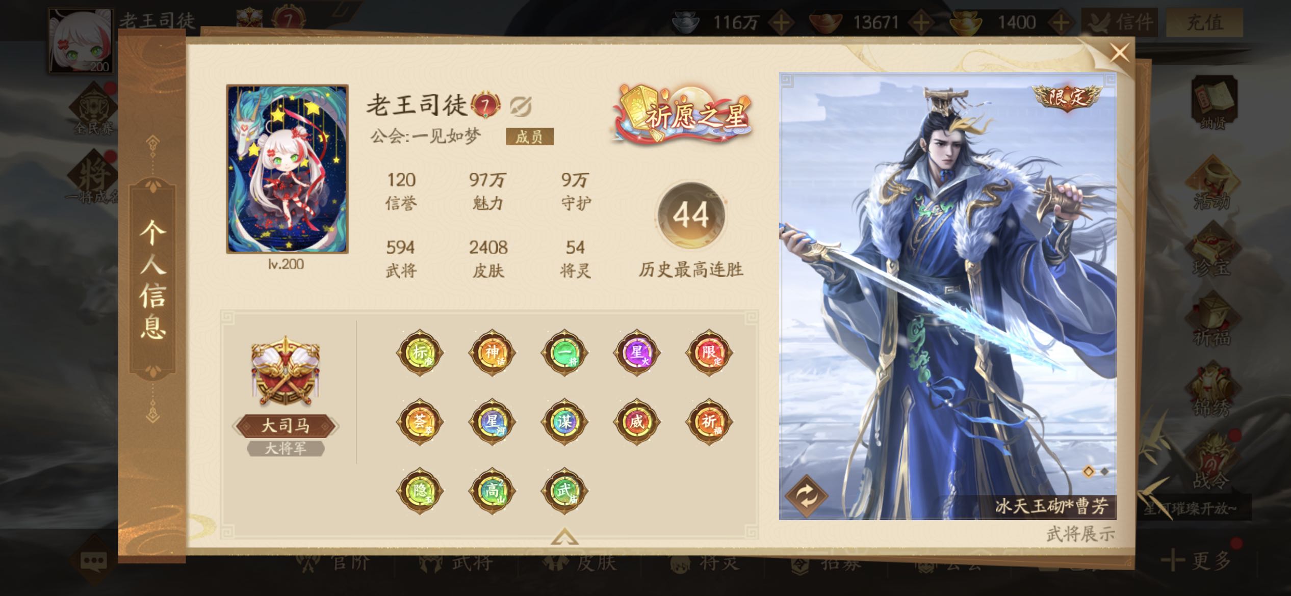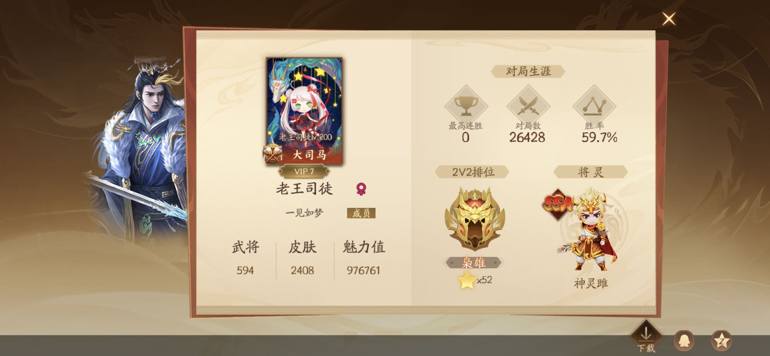 限制: 租号5次及以上 |装备描述:大司马老王号,新武将全有❤️如果缺的还在精测❤️恶意逃跑拉黑,素质游戏,欢迎收藏下单