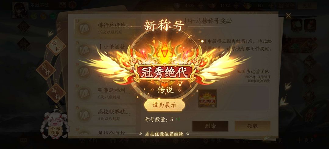 (大司马)三国杀十周年/一将成名大司马出租租号