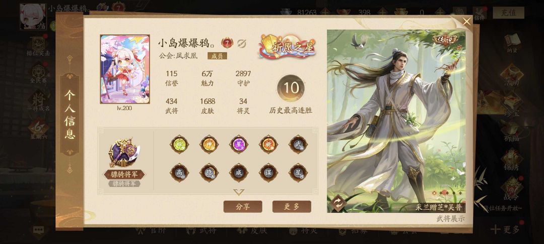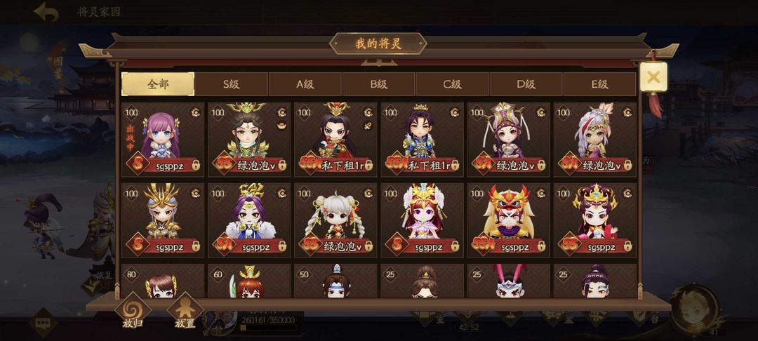 限制: 撤单率<30%才可租用此帐号装备描述:神张飞,神张角(静),神华佗,神姜维,神马超(静),乐蔡文姬,谋关平,芳兰(静),薛灵芸(动),曹芳,张嫙(静),曹金玉(动),周宣,周夷(动),卢弈(静),关索,赵襄,许劭(动),南华老仙(动),吕玲绮(动),公主(静),庞会,管宁,吉平,张曼成,留赞,朱建平,笮融,刘晔,芮姬,丁尚涴,郭照(静),孙翊(动),陈式,谋黄盖,蒲元(动),张琪瑛(静),界凌统;【神武】:神张飞,神张角(静),神华佗,神姜维,神马超(静),神典韦;【谋】:谋关平,谋黄盖;【乐】:乐蔡文姬;【星河】:星袁术,星荀彧