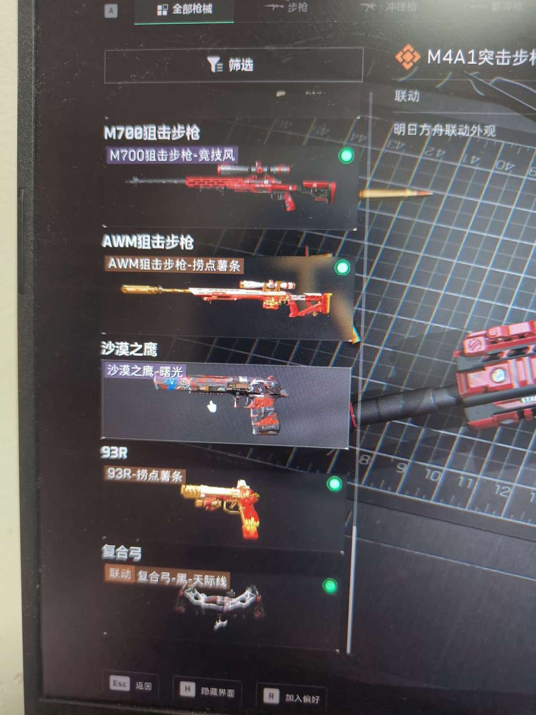 装备描述:- M4A1突击步枪-阿米娅(明日方舟联动款) - ASH-12战斗步枪-鹅鸭杀(鹅鸭杀联动款) - M16A4突击步枪-狩猎时刻 - SCAR-H战斗步枪-启航 - SCAR-H战斗步枪-囚徒 - G3战斗步枪-骑士 - G3战斗步枪-狩猎时刻 - CAR-15突击步枪-阿米娅(明日方舟联动款) - 腾龙突击步枪-捞点薯条 - P90冲锋枪-莫斯提马(明日方舟联动款) - Vector冲锋枪-狩猎时刻 - SR-3M紧凑突击步枪-战术竟备 - 勇士冲锋枪-筑天使·午夜邮差(联动款) - 勇士冲锋枪-工业狂潮 - QCQ171冲锋枪-琥珀态 - M250通用机枪-囚徒 - QJB201轻机枪-鹅鸭杀(鹅鸭杀联动款) - QJB201轻机枪-Old Habits - SV-98狙击步枪-林中猎手 - M700狙击步枪-竞技风 - AWM狙击步枪-捞点薯条 - 沙漠之鹰-曙光 - M700狙击步枪-竞技风 - AWM狙击步枪-捞点薯条 - 沙漠之鹰-曙光 - 93R-捞点薯条 - 复合弓-黑·天际线(联动款)喜欢本账号请点 ☆收藏☆ 方便下次租用,谢谢光临惠顾!