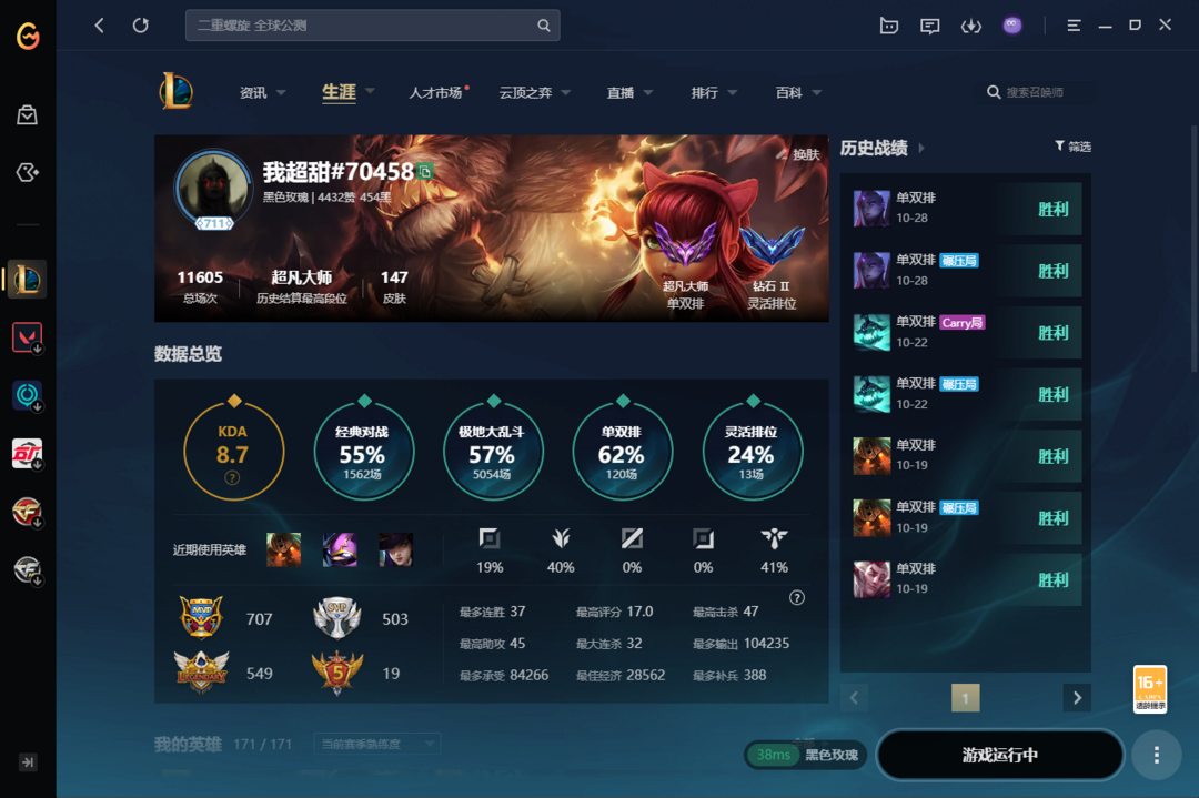 游戏区服:英雄联盟-黑色玫瑰-黑色玫瑰