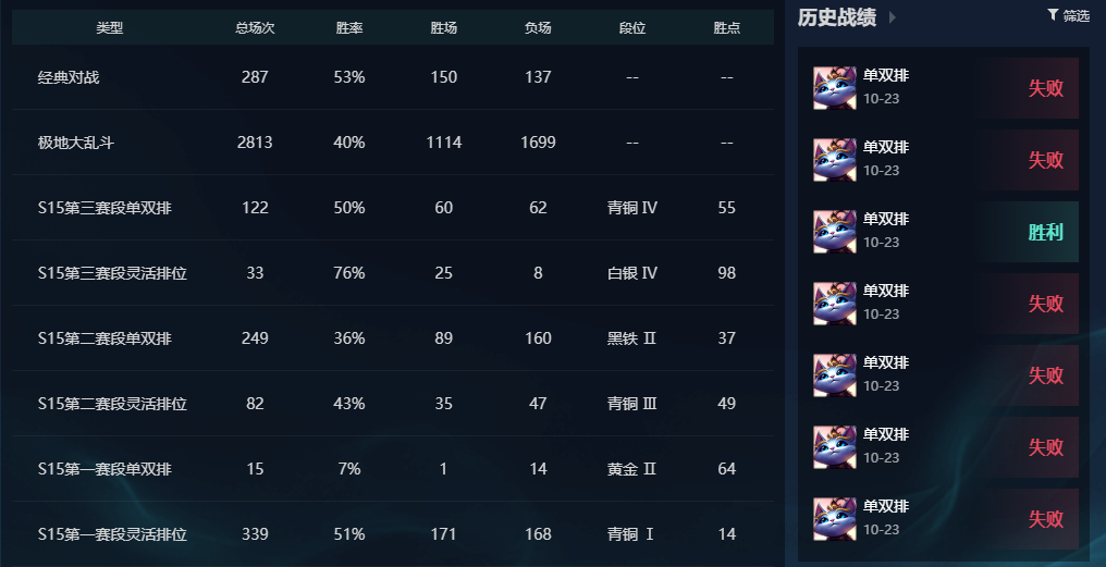 艾欧尼亚❤️100皮可排位❤️单双黑铁❤️灵活青铜❤️千场乱斗匹配负胜率❤️极品虐菜号