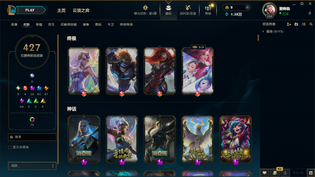 段位:347级 荣耀黄金IV级 荣耀黄金IV