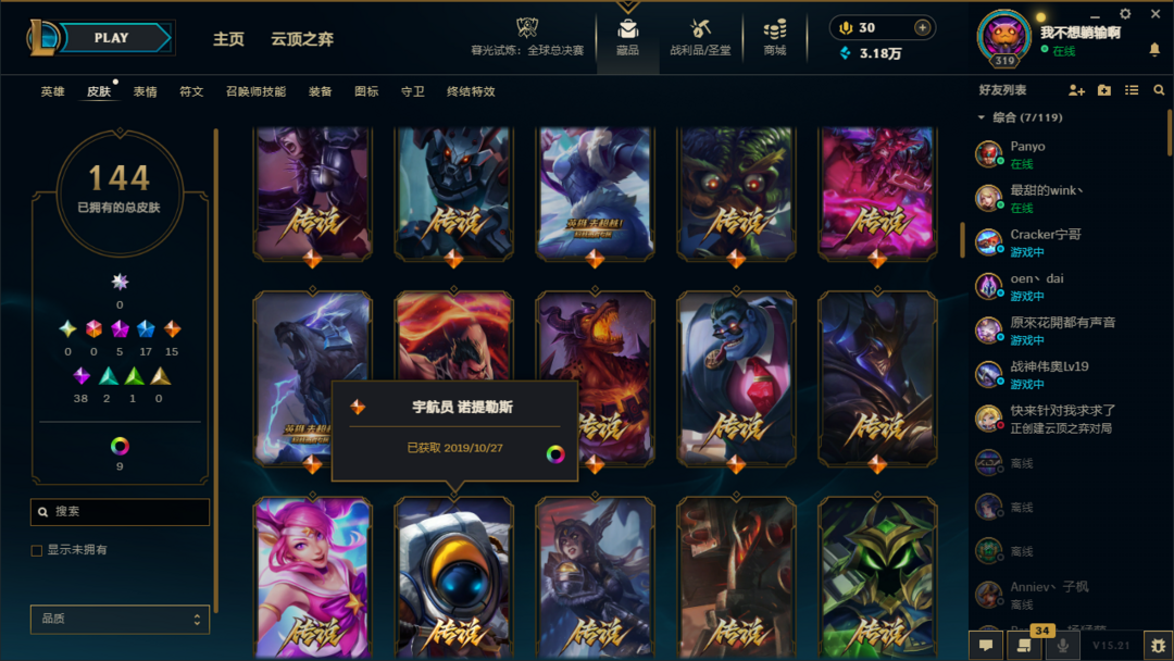 诺克萨+全英雄+天煞劫、冠军劫+大量绝版冠军皮肤