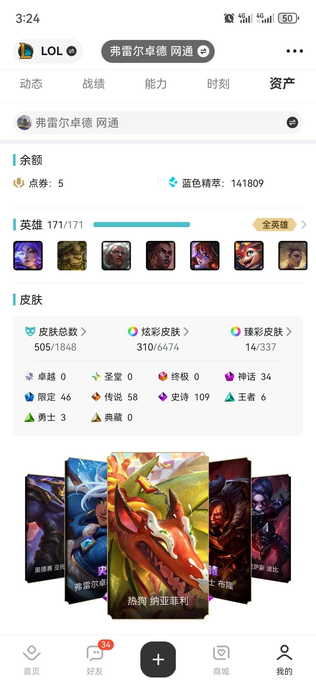 皮肤数量:505个,各类皮肤都有快来看看啦