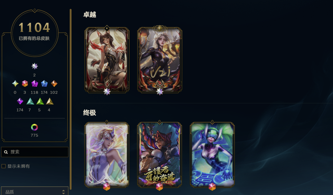 装备描述:1104皮:Uzi卡莎皮肤,龙年,。ig,edg签名皮,云顶小小英雄和神话棋盘