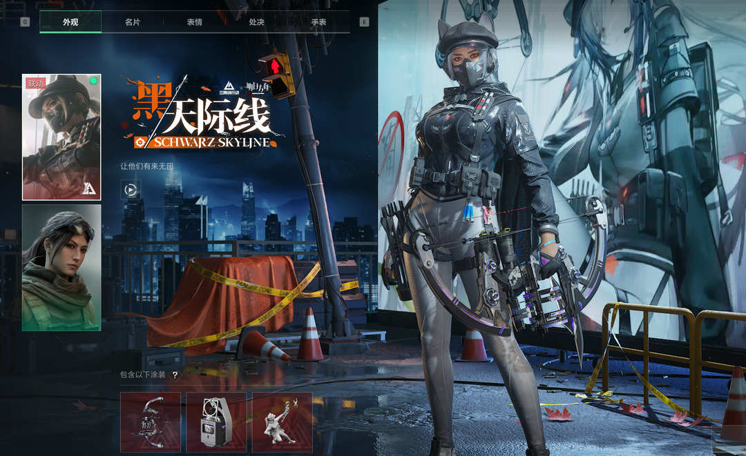 皮肤号 威龙云霄戍卫套⭐露娜黑天际线套⭐信条刀⭐6级体力9格安全箱