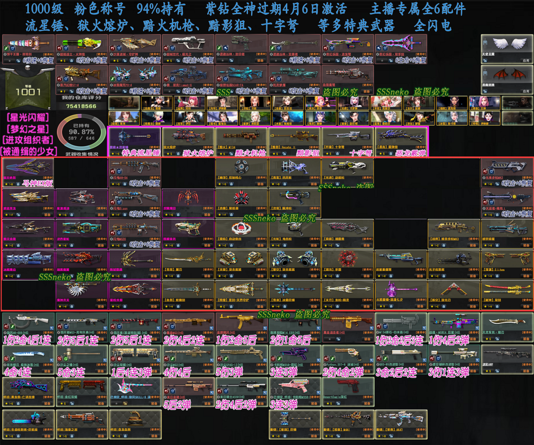 薇喵』典藏流星锤☀马神EX☀紫钻临时过期☀多特典☀黯火机枪☀黯影狙☀狱火熔炉☀多人物