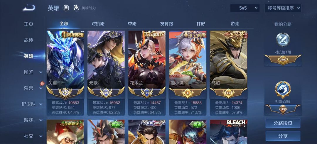 4月正式服大国标关羽⭐1.95w战力⭐历史1.6w小国标元歌花木兰⭐超多省级限定皮肤⭐可排位禁巅峰