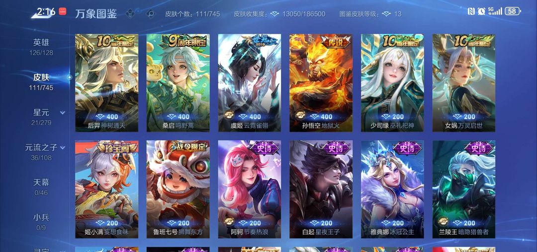 可排位《126英雄、111皮肤》4传说⭐22史诗云霓雀翎⭐地狱火⭐神树通天⭐末日机甲