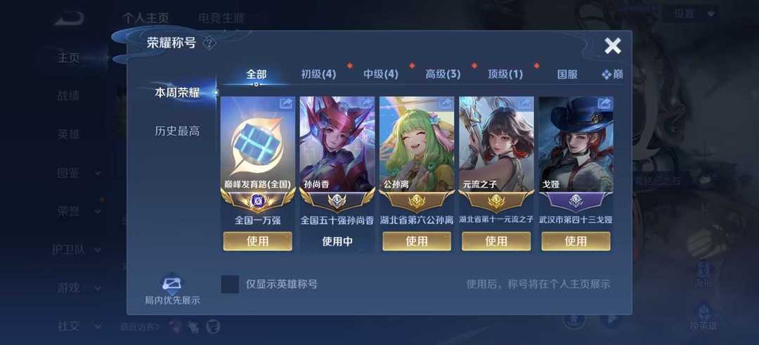 正式服/国服4月在榜五十强小国标孙尚香✨省级在榜金标公孙离元流✨万强闪电框【8113名】✨严禁巅峰赛