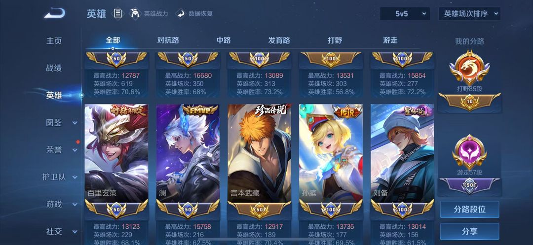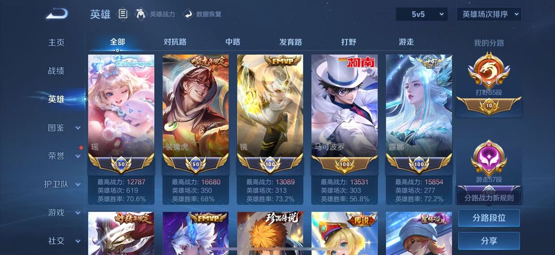 正式服在榜85段打野⭐历史8小国标⭐1.7w裴擒虎镜露娜⭐v10贵族610皮⭐可排位