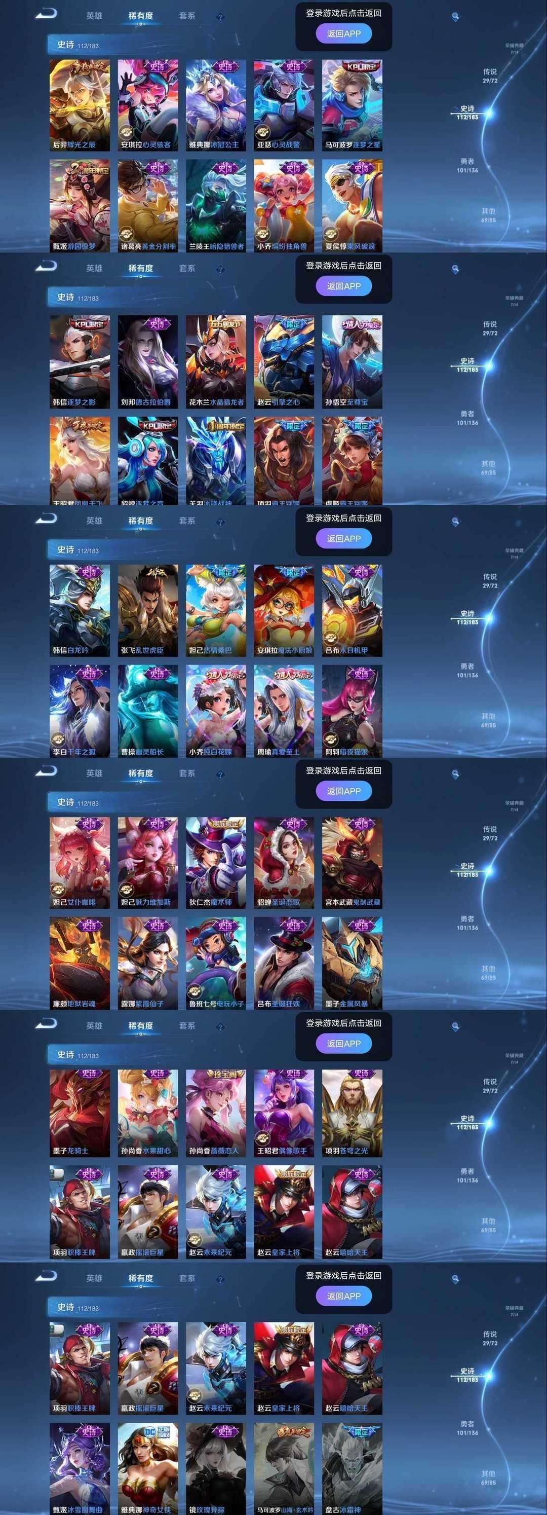 装备描述:>>>>>>毁号,涉及毁坏虚拟财产罪及计算机安全罪,请文明游戏素质游戏,让我们共建美好租号平台>>>>>> 本游戏账号: ,英雄多,皮肤多。典藏皮肤8个+武则天9个水晶,感受典藏皮肤带来的优质体验快感,, 新夏洛特浮生妄皮肤,吕布天魔缭乱||李白凤求凰,私人所属英雄皮肤有:吕布新典藏❤️星空梦想||芈月 大秦宣太后||孙尚香 杀手不太冷||孙悟空 全息碎影||武则天 倪克斯神谕||夏侯惇 无限飓风号||小乔 天鹅之梦|达摩 黄金狮子座||狄仁杰 超时空战士||貂蝉 仲夏夜之梦||后羿 黄金射手座||铠 绛天战甲||孙尚香 末日机甲||孙悟空 地狱火||武则天 海洋之心||张良 黄金白羊座,等等 注意事项: A.游戏过程中请不要恶意挂机或者不文明发言;B.恶意挂机、顶号等行为将被拉黑无法再次下单;C.进入游戏后中途请勿退出登陆,否则无法再次上号;D.部分账号由于异地登录可能会出现密码错误提示,通常再尝试5-6次后可上号。 |||||||||>喜欢本账号请点 ☆收藏☆ 方便下次租用,谢谢光临惠顾|||||||||