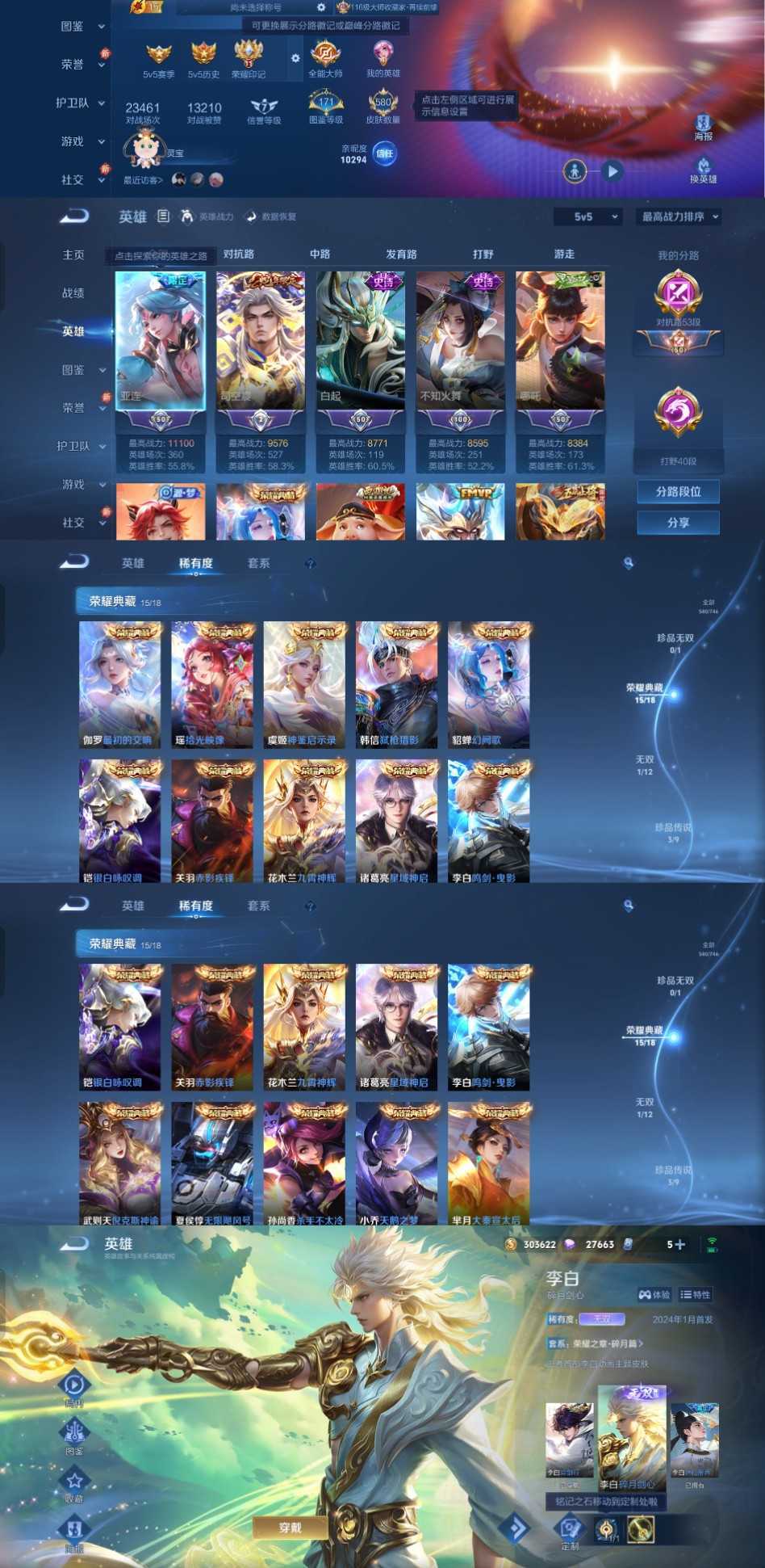限制: 租号2次及以上 | 撤单率<49%才可租用此帐号装备描述:时间到了还登录白玩或者顶号全部改密拉黑处理永不解除,顶号机器会秒禁玩改密,顶号不仅拉黑还没得玩,赚三两块不容易,请理解谢谢。 ❤❤❤❤❤❤❤❤❤❤❤❤❤❤❤ 请勿开挂,挂机,送头,骂人,撤单后游戏等如有违规永久拉黑永不解除。 重置二级密码不要费劲了,号主每天都会上号查看,多行不义必自毙,人在做天在看,多做好事多自律,少做缺德事。 该号英雄128个皮肤580个,典藏16个,无双1个,珍品传说3个,星传说8个,传说81个,史诗205个,祝你游戏愉快~