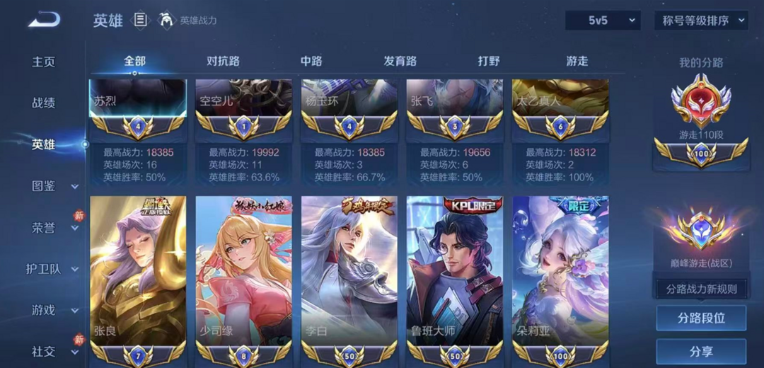 正式服不禁言✨四月历史15国服大国标孙膑巅峰游走110段小魔方✨数字标少司缘空空儿鲁班张良狐妖小红