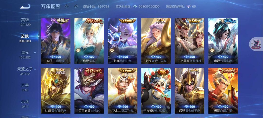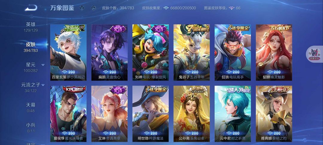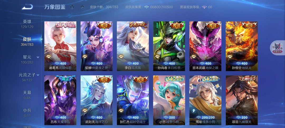 V10❤女号❤394皮肤7水晶1无双离烟恨❤马年狄仁杰❤安琪拉颠倒童话❤天鹅之梦❤白虎志❤太华