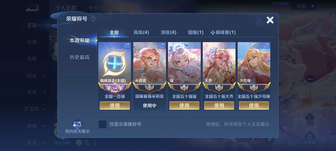 4月在榜国服朵莉亚小国服瑶大桥少司缘可排位/福星灵宝历史四大国女用软辅国服瑶不禁言女号