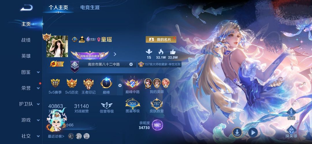 荣耀v10不禁言❤787皮纯满皮❤历史巅峰中路历史6国服❤满星元满按键满小兵满水晶❤图鉴304级