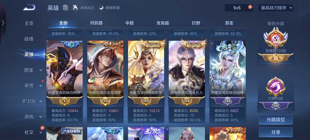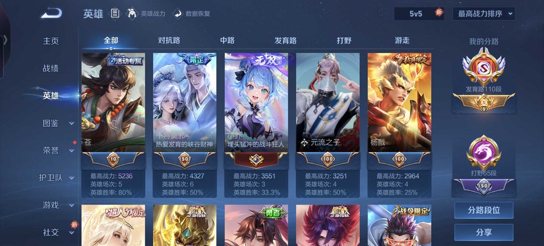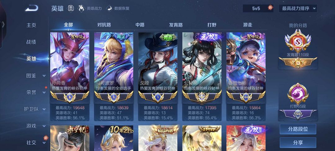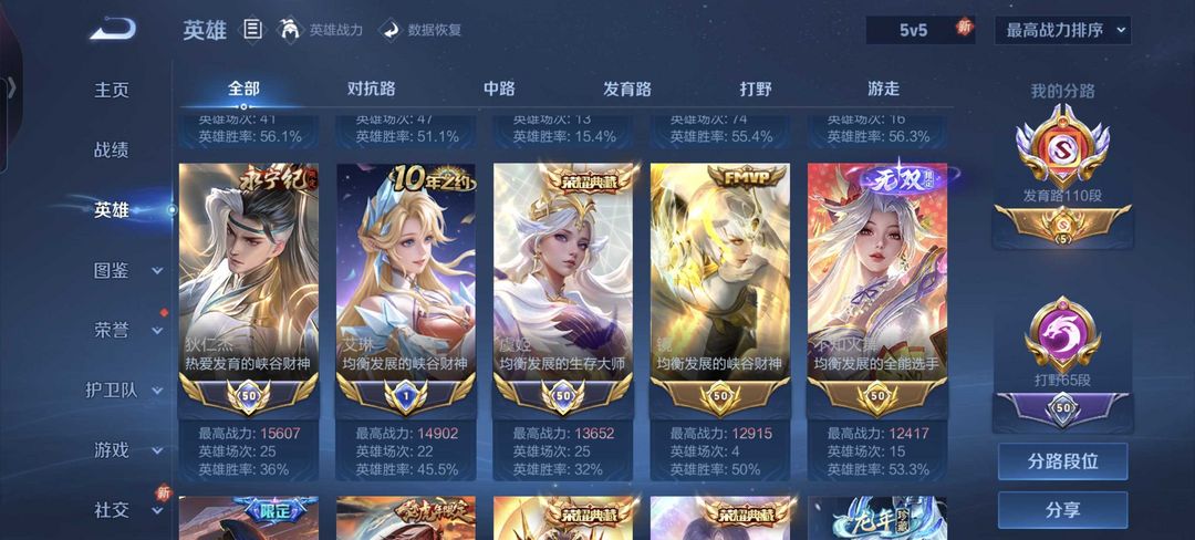 正式服110段国五十强发育路✨打野中路对抗市五十强⭐️公孙离孙尚香区五十强⭐️历史大国发育路