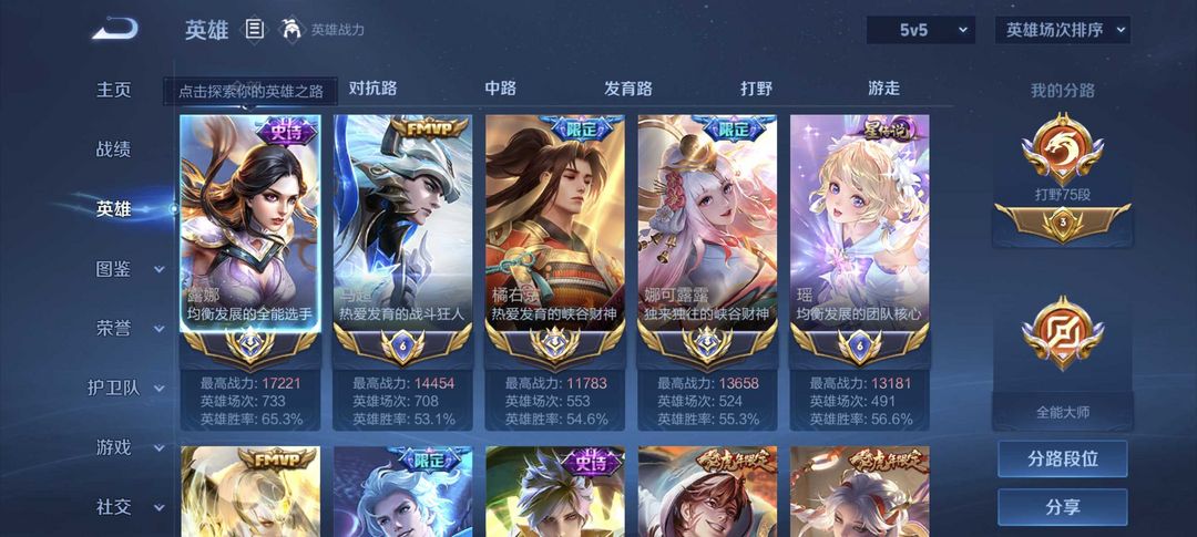 历史大国服露娜橘右京娜可露露⭐1.7w高分⭐75段打野