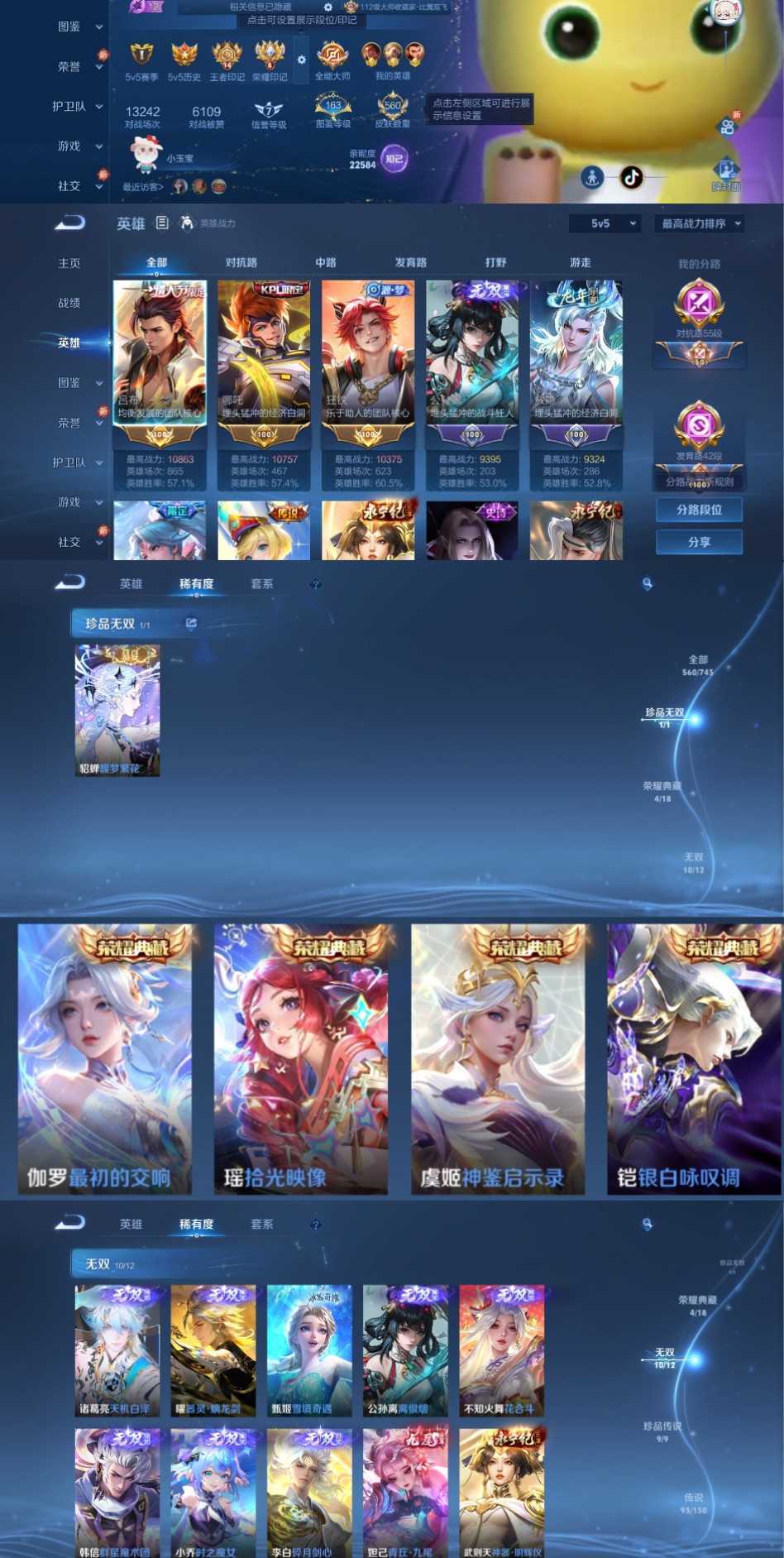 限制: 租号2次及以上 | 撤单率<49%才可租用此帐号装备描述:时间到了还登录白玩或者顶号全部改密拉黑处理永不解除,顶号机器会秒禁玩改密,顶号不仅拉黑还没得玩,赚三两块不容易,请理解谢谢。 ❤❤❤❤❤❤❤❤❤❤❤❤ 请勿开挂,挂机,送头,骂人,撤单后游戏等如有违规永久拉黑永不解除。 重置二级密码不要费劲了,号主每天都会上号查看,多行不义必自毙,人在做天在看,多做好事多自律,少做缺德事 该号英雄128个皮肤560个,珍品无双1个,典藏5个,无双10个,珍品传说9个,星传说5个,传说93个,史诗181个,祝你游戏愉快~