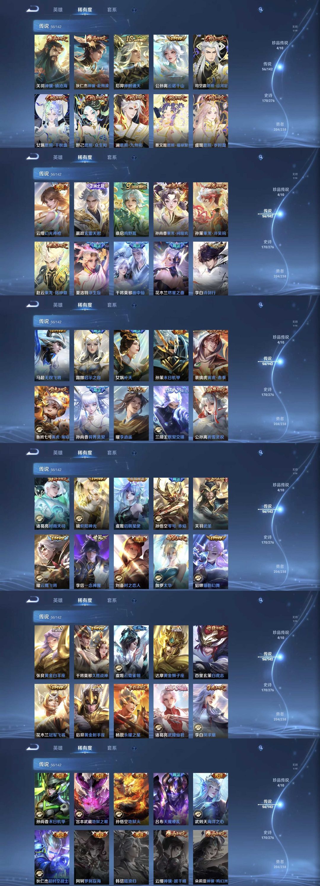 国服钟无艳万战司空震万战裴擒虎✨4珍品56传说✨镇苍海赴朔漠✨天机白泽兔狲蓬尾✨云诺千山全蛇年玉鸾吟