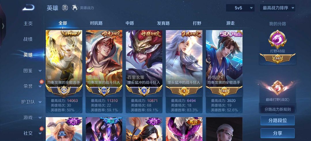 四月在榜省标玄策❤️历史国服镜1w4战力国服玄策国服老虎裴擒虎省标孙悟空李白❤️至尊宝白虎志