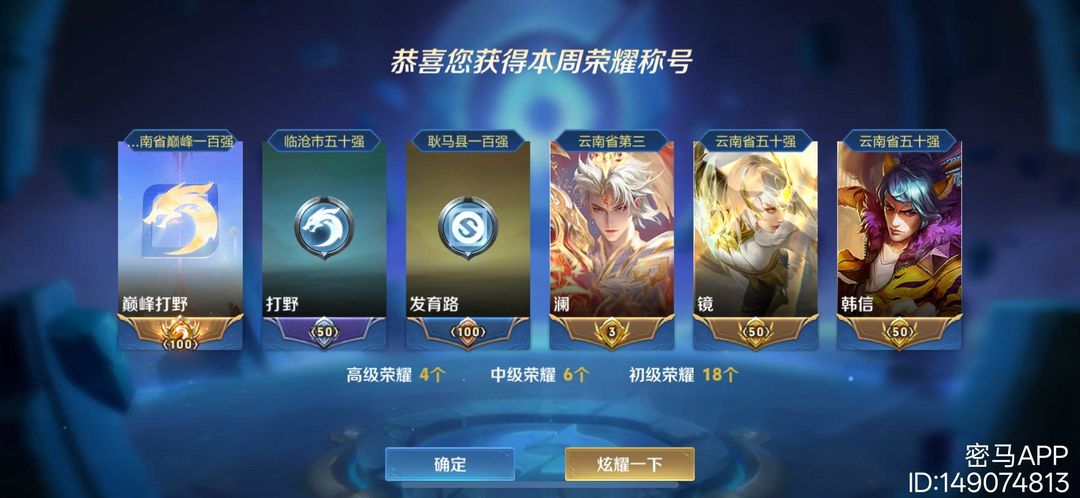 限制: 租号10次及以上 | 撤单率<100%才可租用此帐号装备描述:星期一改定位直接拉黑 上游戏隐身直接拉黑 左下角——进入店铺更多选择 租客须知 【订单结束后下线后再次上号的租客 本店铺自动拉黑 喜欢号麻烦各位续租或者重新下单】 【如果登录游戏发现不能登录,麻烦点击协助并且dd号主】 【恶意撤单 不说明合理理由的 同样拉黑】 【恶意挂机 送人头 全部余额并拉黑】 【未满18岁禁止下单支持国家就完事了】 【本人是合伙人,本账号已在浙江省公安局备案 属私人财产 恶意游戏行为导致封号 将委托律师事务所起诉赔偿】 【不良游戏行为会上报平台经理处理】 【更多优质账号收藏店铺挑选 定时发红包】
