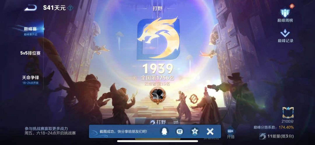 打巅峰赛是孤儿⚡打野巅峰万强1939闪电框4000名⚡逐花归海⚡省3澜镜韩信市马超禁巅峰