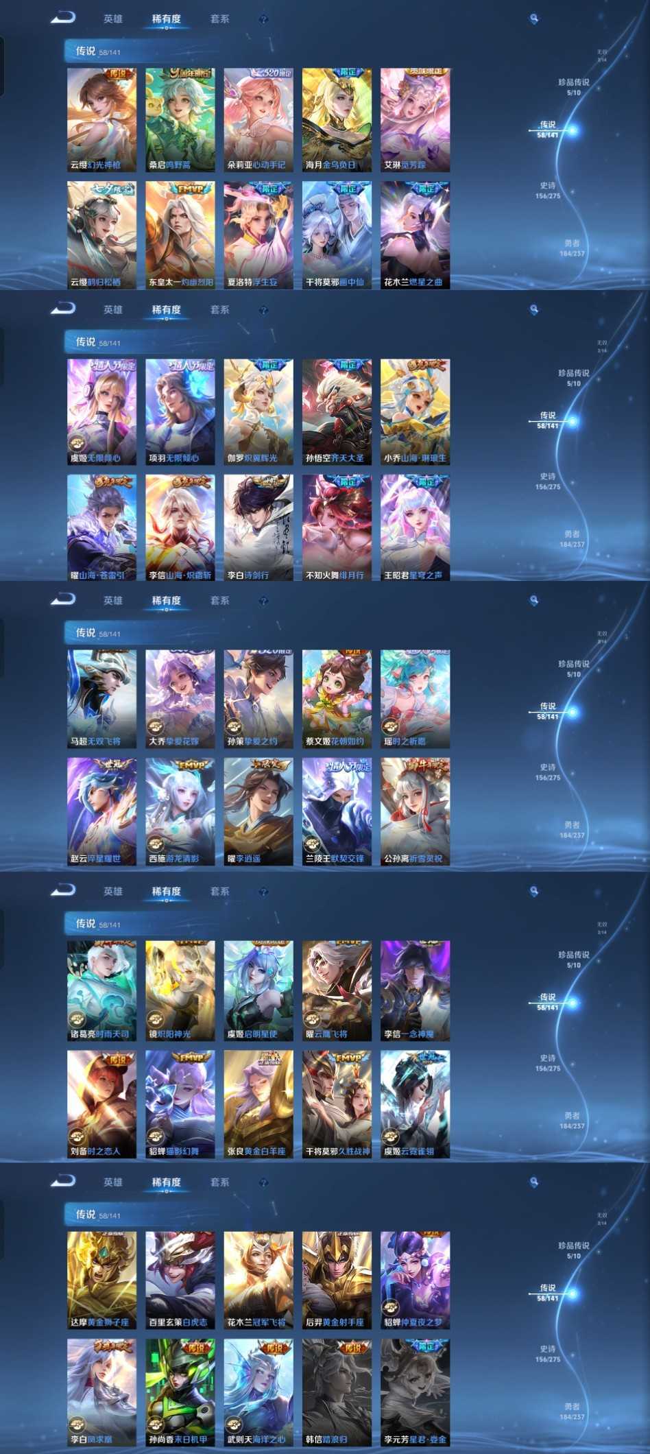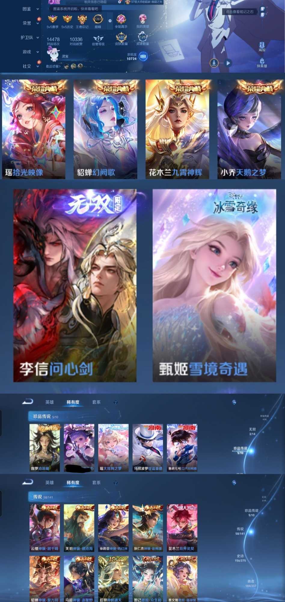 限制: 租号2次及以上 | 撤单率<49%才可租用此帐号装备描述:时间到了还登录白玩或者顶号全部改密拉黑处理永不解除,顶号机器会秒禁玩改密,顶号不仅拉黑还没得玩,赚三两块不容易,请理解谢谢。 ❤❤❤❤❤❤❤❤❤❤❤❤ 请勿开挂,挂机,送头,骂人,撤单后游戏等如有违规永久拉黑永不解除。 重置二级密码不要费劲了,号主每天都会上号查看,多行不义必自毙,人在做天在看,多做好事多自律,少做缺德事 该号英雄128个皮肤485个,典藏4个,无双2个,珍品传说5个,星传说4个,传说58个,史诗156个,祝你游戏愉快~