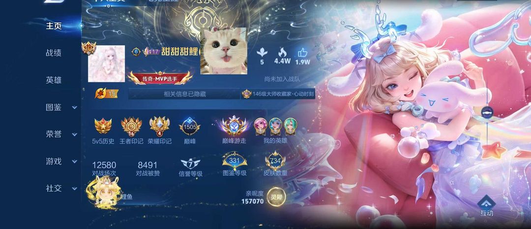 荣耀V10极品富婆女号巅峰游走大国服8国服瑶大乔少司缘3省金牌瑶满隐藏灵宝满小兵天幕满按键331图鉴