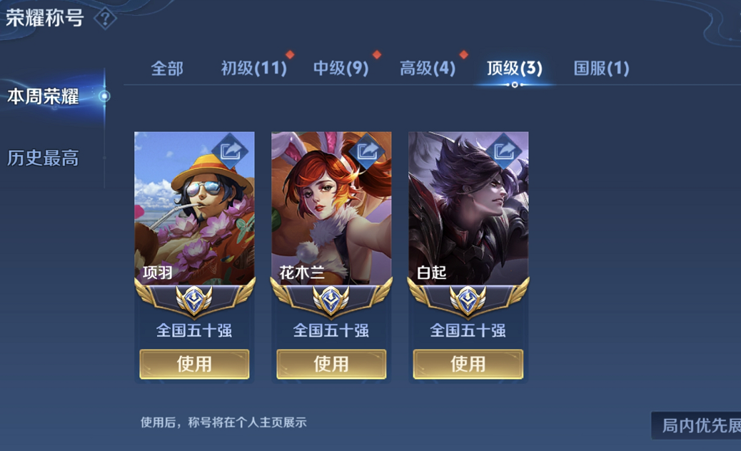 十一月在榜2国服大国标项羽✨国服50强花木兰白起闪电框巅峰1940可打排位禁止巅峰✨顶级对抗路不禁言