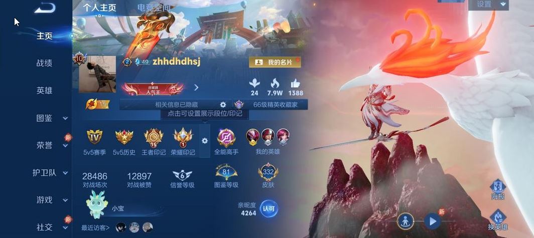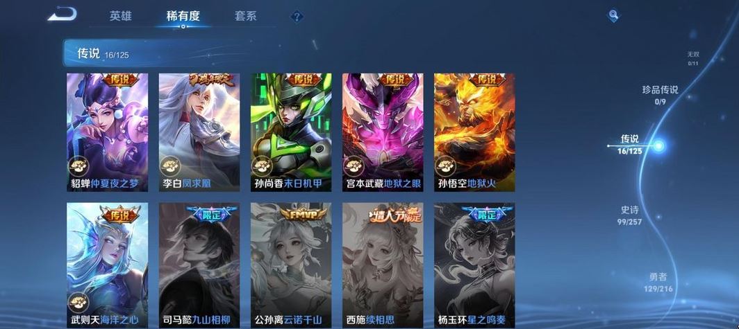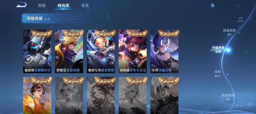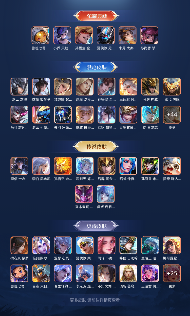 装备描述:贵族等级V10,英雄数量128,典藏皮肤数6,皮肤数量349,冰锋战神街头霸王天鹅之梦至尊宝杀手不太冷大秦宣太后凤求凰热情桑巴星空梦想梅西无限飓风号一生所爱全息碎影大圣娶亲冰霜恋舞曲青龙志白虎志朱雀志久胜战神飞衡梁祝龙胆神威